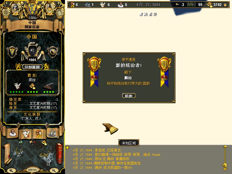 而是民族大融合后的中国.这就只能选清触发中华帝国剧情