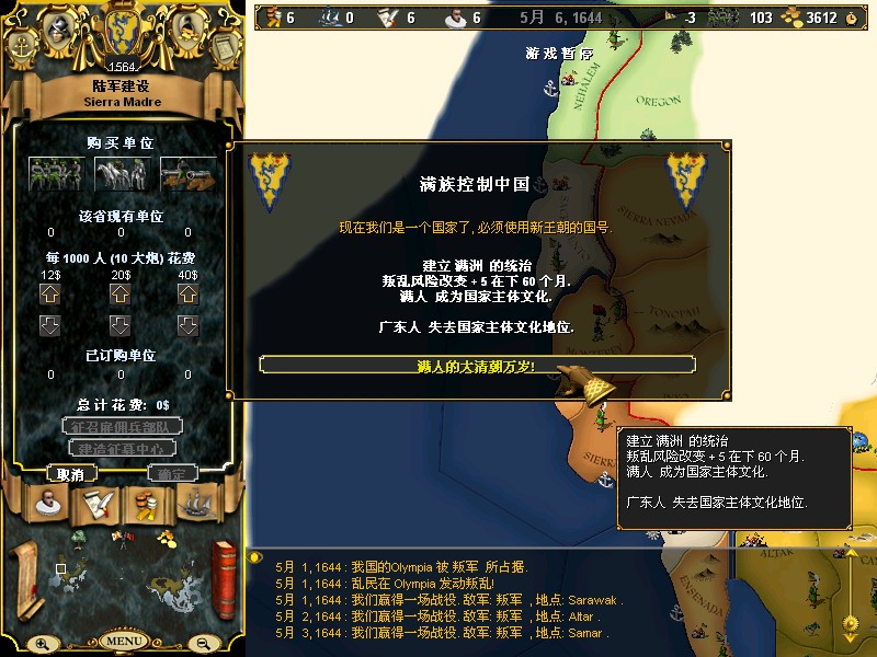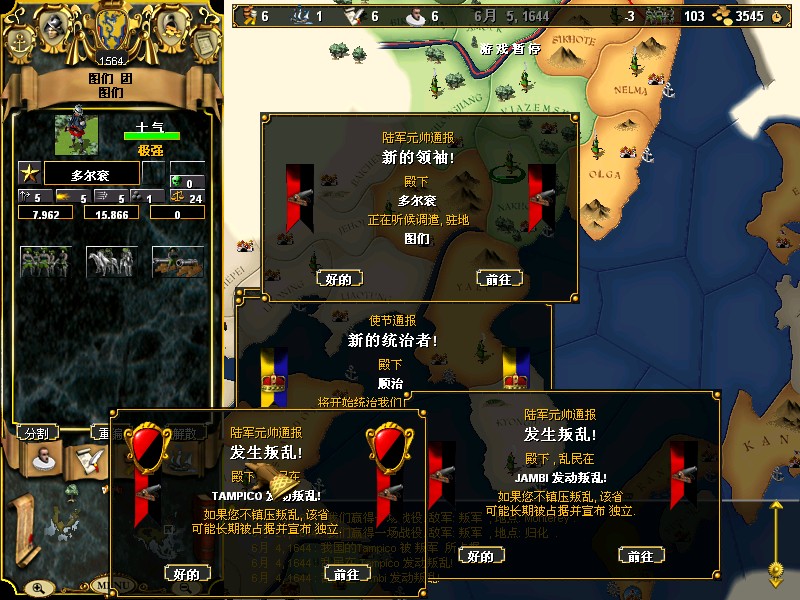 居然还给我出这种随机事件.一个城一下子出现三万叛军