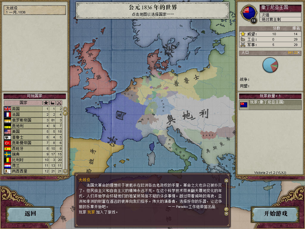 VIC2开的第一个国家就是普鲁士,毫无压力的推倒茜茜公主和他老公