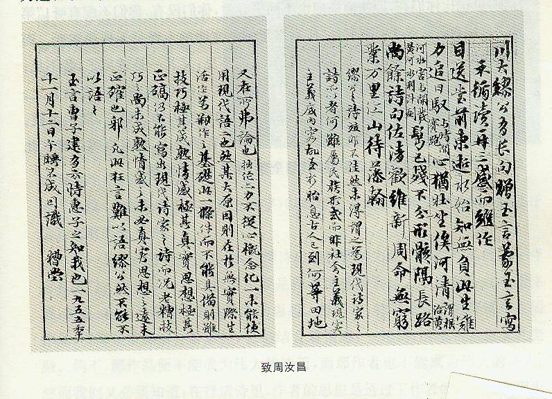 1955年11月12日,顾随写给周汝昌的信,有“《川大缪公(缪钺)有长句赠玉言,蒙玉言写示,循读再三,感而继作》,……缪公诗并非不佳,然未得谓现代诗家之诗。所以者何?……凡此狂言,难以语缪公,然不能不以语玉言。曹子建有云:‘恃惠子之知我也”。