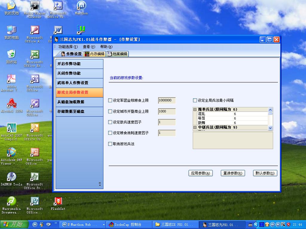求问三国九Pk版是否有可以改全局兵法威力的修改器。