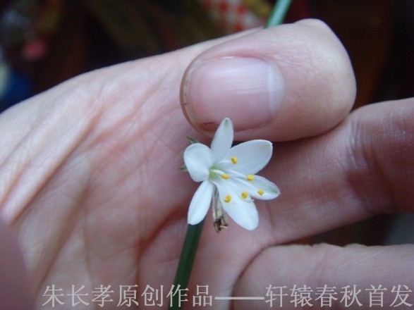 俺这人有种花的爱好,但是往往种瓜不得瓜,种豆不得豆,所以历经不知多少次花草的死亡,才发现无所畏惧的吊兰,我种的这种吊兰连我自己都不知道它是什么品种,但是它清新淡雅,顽强的生命力却深深感染了俺,所以俺就在家中了很多这种吊兰。从三月下旬开始我窗台的几盆吊兰争相开花,要知道它们冬天是无法存活的,只是靠着暖气才顽强生存下来(详见图1),真让人怜惜。花朵淡雅,每个小花朵只有手指甲那么大(详见图2),每朵花也就两天的时间就开败,趁着清明时节到来,俺用数码相机把它们保留下来,与大家一起享受这个生机勃勃的清明时节。