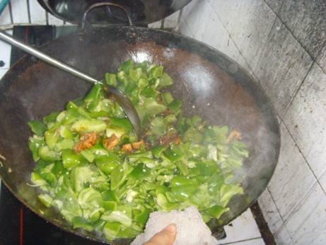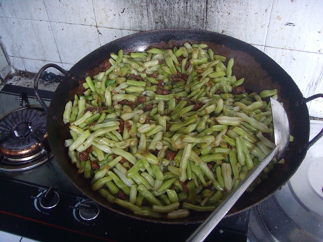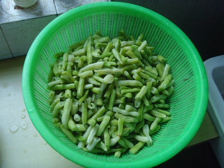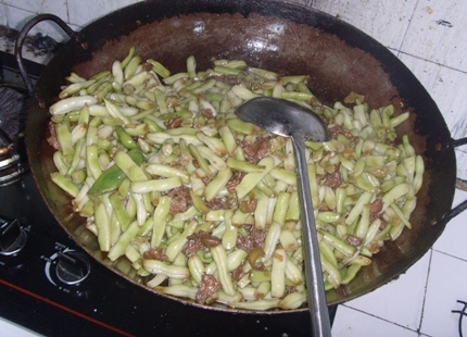 下面我和同事合力完成这段大锅饭的主菜,北方人常吃的芸豆炒肉。