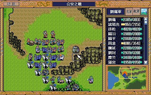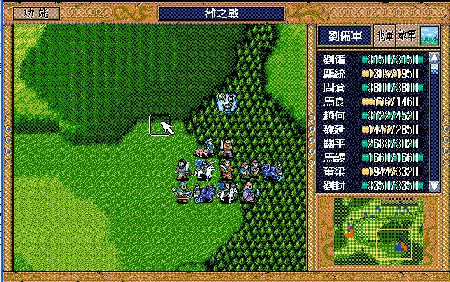 由于我军有赵云简雍关平糜竺赵何都是第1回合升级,张飞周仓牵制,因此我军除刘备外都行动14回合,第1回合刘备把马给赵云