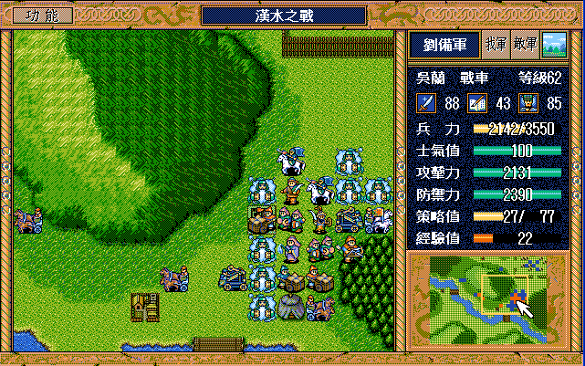 由于比较照顾庞统,因此魏延沙摩柯策略受到一定影响,特别是沙摩柯经验较少,由于策略上限太小,屡次让出靠两个军乐队的位置给庞统,以后要全力照顾老沙,多余的一个主将留给他,毕竟特殊兵种里面他的经验最值钱
