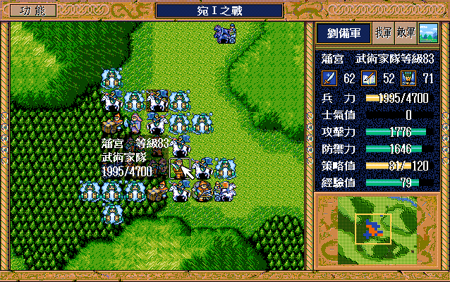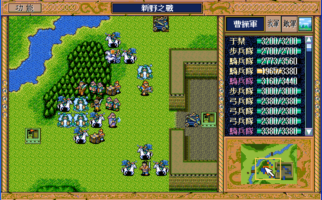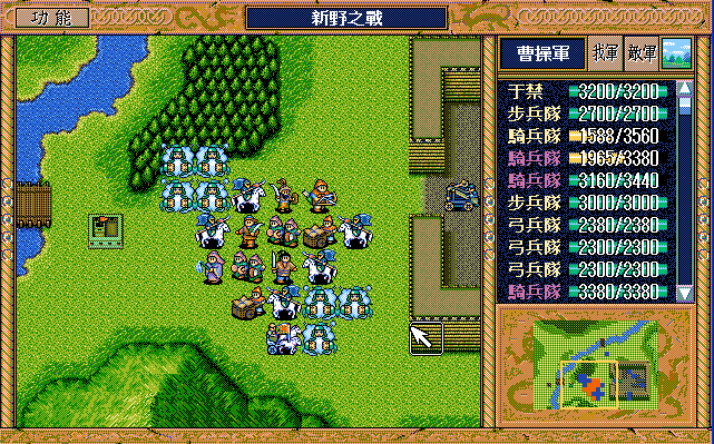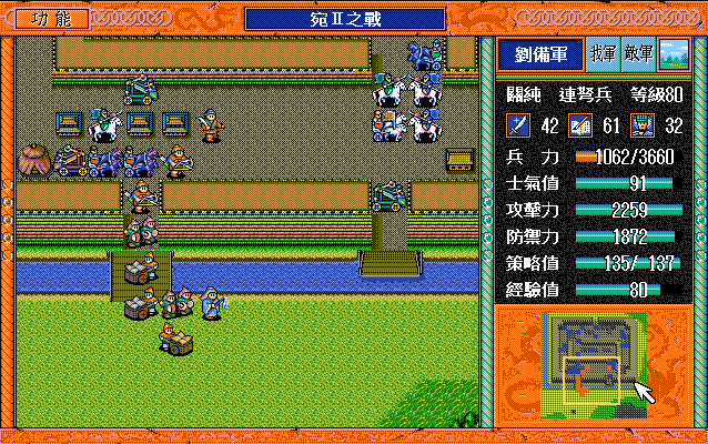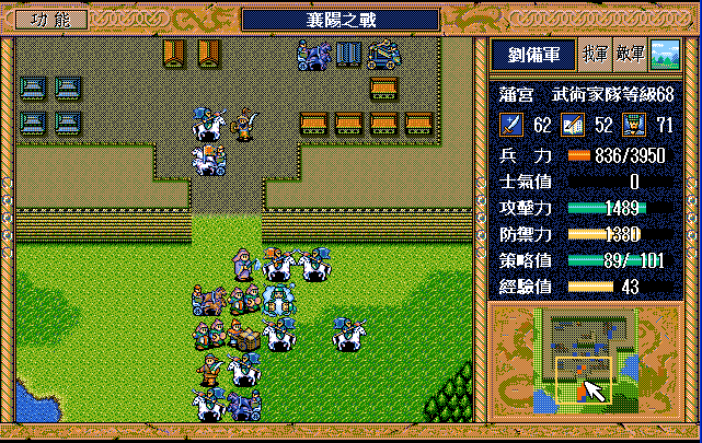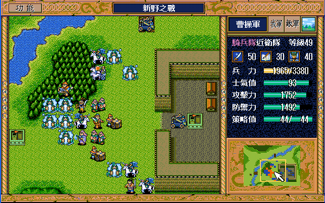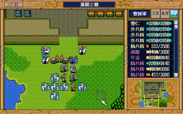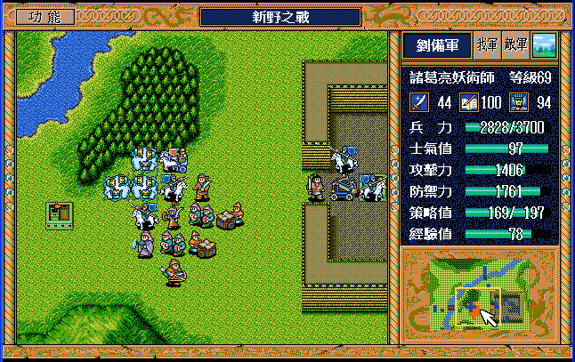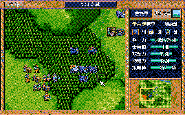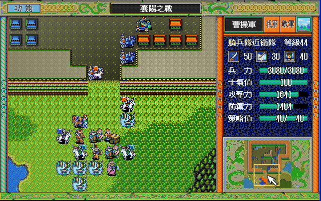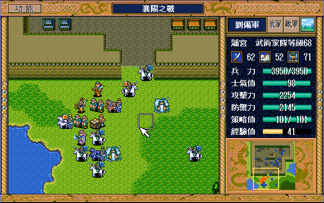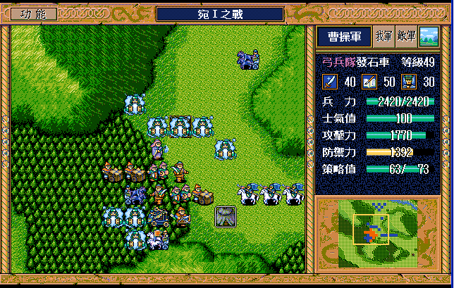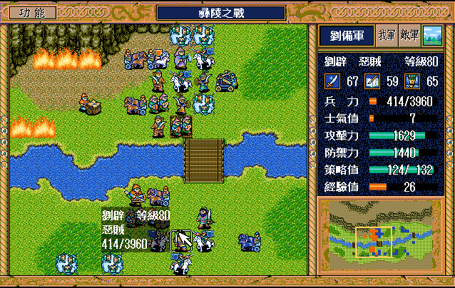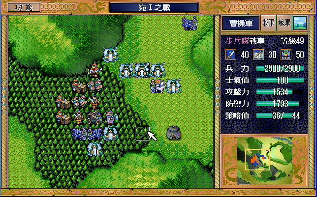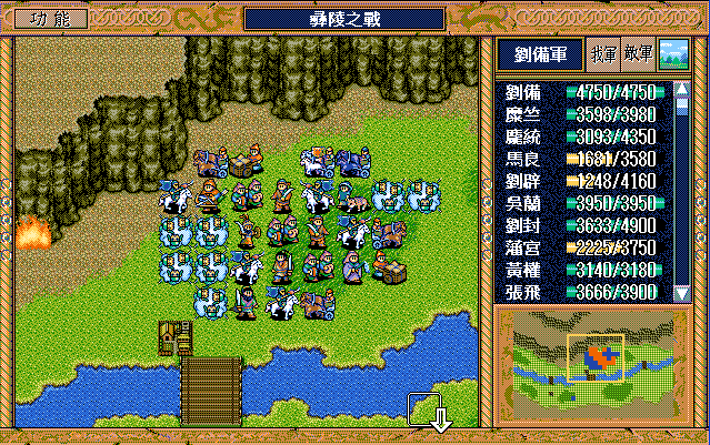 后面孔明伪装混乱梅花五,开始放火,刘备帮忙成阵后吸引两个步兵下来,其中一个混乱备用,然后出发拿青囊书给吴兰,吴兰第18回合变运输队,由于敌军ai太讨厌,没有刘备配合敌军会乱走,敌军体力根本反击不完.注意保留激励点,第34回合刘备出发,第37回合灭曹仁左下一个步兵,吴兰灭步兵给关羽开路,关羽出发去单挑曹仁