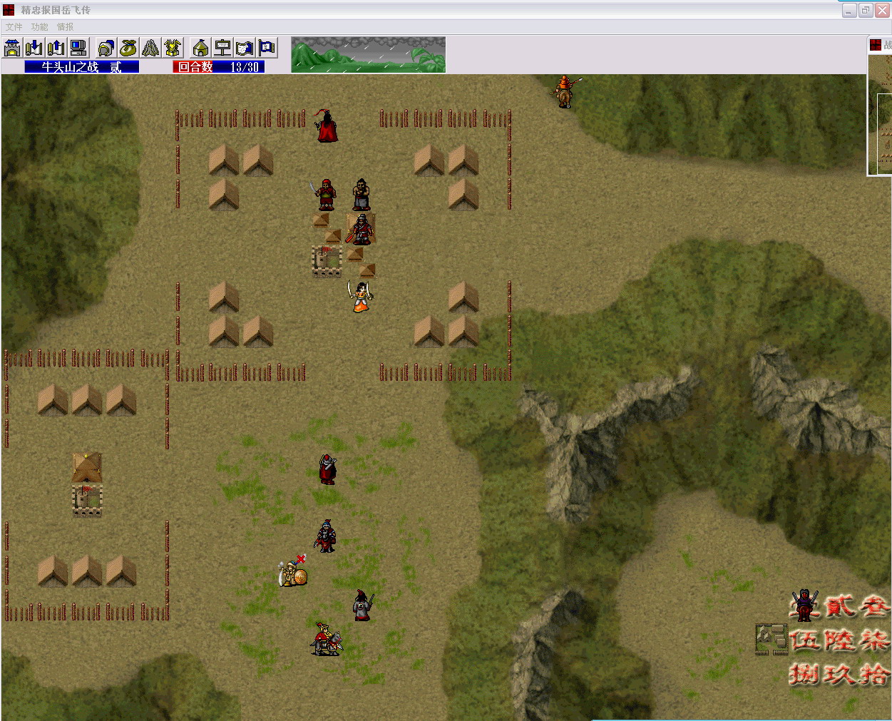 最后岳飞对话屈原公要注意一个问题,不能让岳飞在对话同时占领兵营或击退敌军,这样是无效的,必须在对话前让我军其他人完成这些任务。
