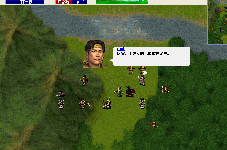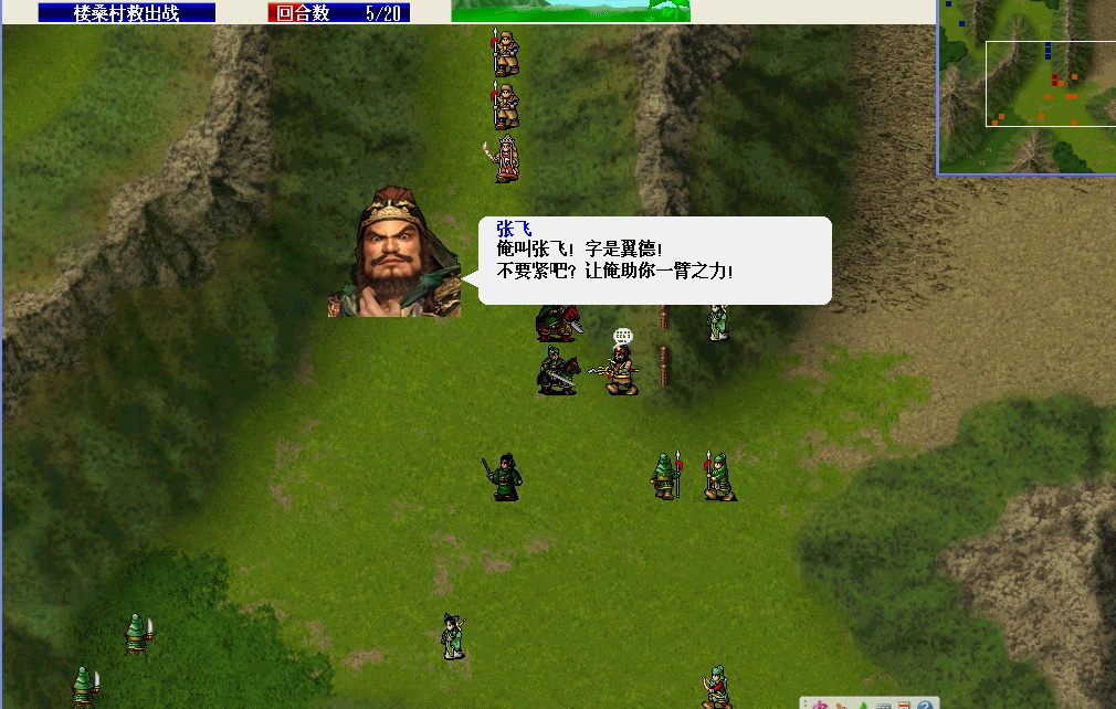 充分利用首轮可以存档,两百姓分别给关羽吃猛虎和疾风加攻加敏,女兵向左一格避开高升,关羽双击波才(敌方回合反击击退)。刘备霸气村长回归刘备,刘备双击严政,女兵将其击退,另一女兵向上卡位并取得药材。友军回合张飞击退管亥,敌方回合反击击退程远志。上方村庄解救成功,同时出现两个友军枪兵,这两人要好好利用,后面会起不小作用。
