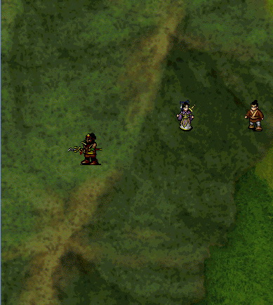 第三回合,关羽击退高升解救村庄,出现2友军。刘备与村长的回归配合早于第二回合就击退张曼成解救村庄,同时出现1友军。三个村子全部解救,敌军多了2个,同时提示贵重品位置(随后给出)。此时张飞和下方女兵的位置分别有矿石和药材。村长继续回归刘备。敌方回合张宝、张梁出现,邓茂出击。