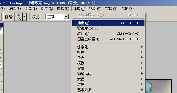 1.打开图,复制图层,在新的图层上编辑,选择滤镜——抽出(图1)