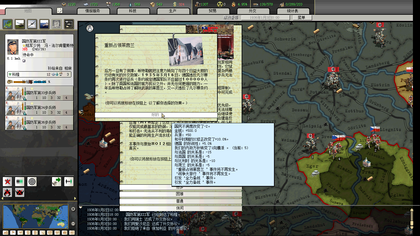 啤酒馆1.5的有不少很新颖的系统,至少对我这个从DA1.3以后就没玩的人来说,很新颖,但是对于欧洲战场来说,啤酒馆的内容就太古老了,基本上还是轩辕MOD那些东西,一点新鲜感都没有,而且以前轩辕MOD里的事件,很多是针对玩家的某些打法设计的,1.5的地图变了后,这些都难免过时了,于是我第一次玩啤酒馆,玩到40年后就决定弃档重做。