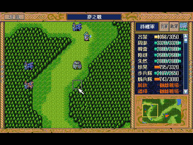 实际打起来发现,只要魏延能反击掉右边的骑兵猛兽师,并能迅速劈掉到他右边的用完策略的步兵(没用完策略的忙着在上面援助呢),下面有名字的步兵都能上来