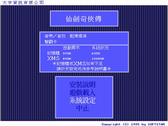 但是比较可惜的是,用这个不一定能进苍龙逐日,菠萝三国和再战江湖等这些修改版本,因为不是纯DOS系统,希望诸位大侠能做出能在Dosbox下运行的补丁.