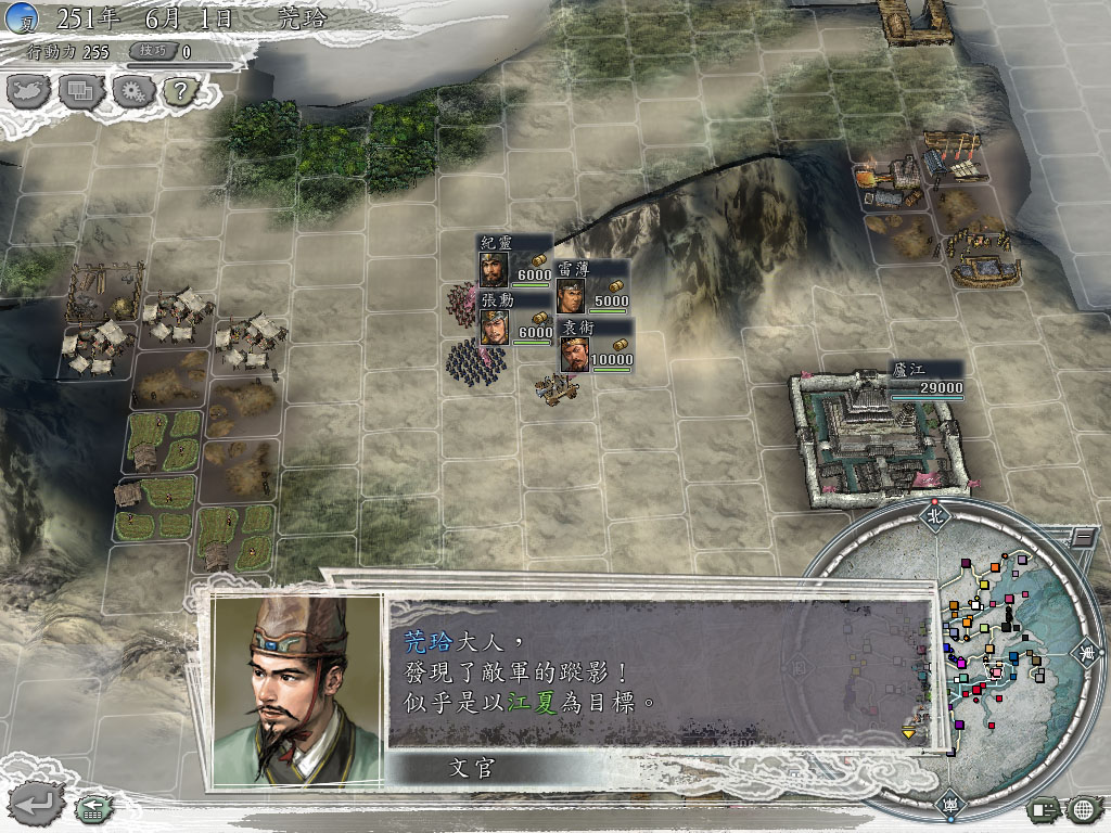 我真的来到了三国,这是公元251年1月1日,我现任江夏城太守。由于时间的穿棱,自184年以来,三国的群雄,名臣,名将,军师,美女都聚集一堂,各有各的地盘。而我却被分在江夏城,普天之下,这难守的城。更可恨可气可耻的是,我居然是最最最无能的武将,兵种适性全C我认了,我毕竟是末来人,没见到三国的兵种,我认。特技白板,我也认了,我毕竟只在纸上谈兵,白板就白板。但我凭啥一下子变性了,变成女的了,凭啥我手无缚鸡之力,而且又是天下最弱智的,本来是一大帅哥,就算变性了,也是美女一个,可那魅力为啥为1。我不明白,我无解,我更无柰。