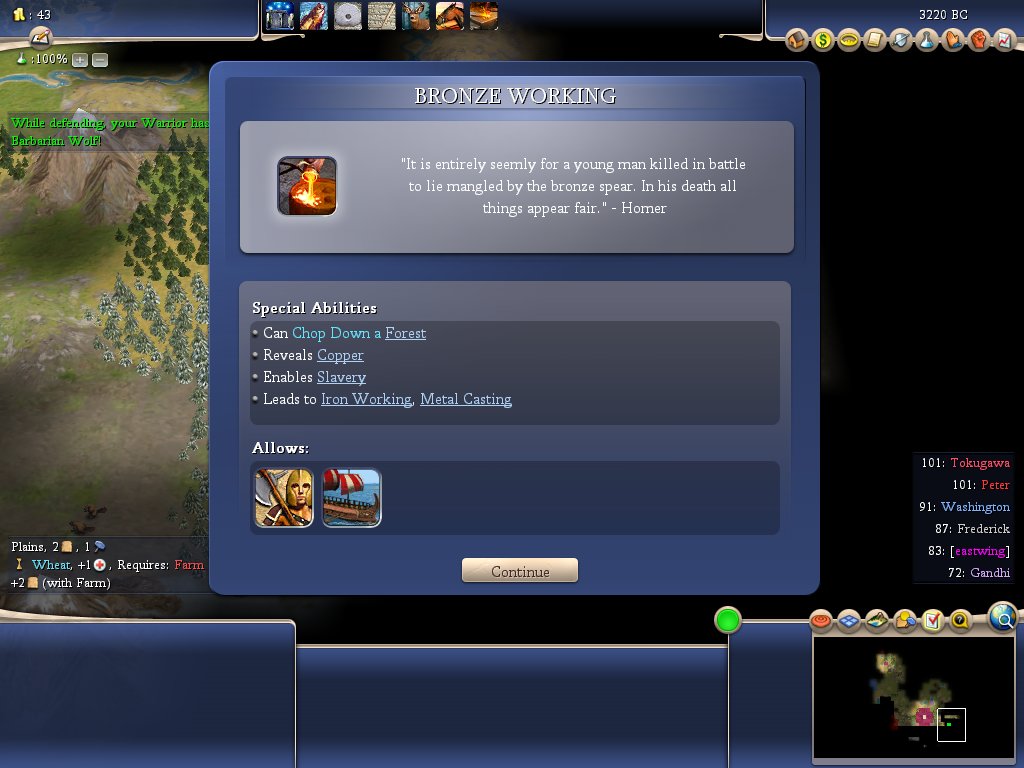 因为太祖爷的扩张属性在战神中得到的加强,所以我的开局思路确定为 暴工人->砍树出移民->抢奇迹