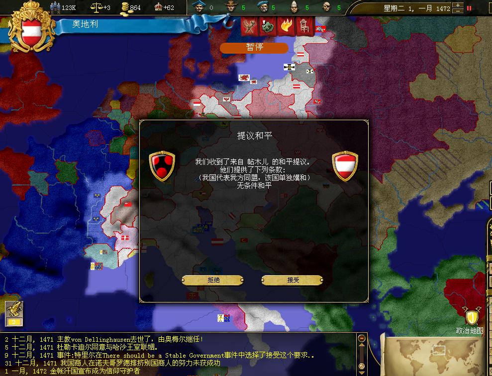 标题: 哈布斯堡王朝!, EU3奥地利-普鲁士-德国战报(成功变身德国,完结)(论坛太卡,而且后期纯粹是爆BB了,没啥意思了,以变德国结束)