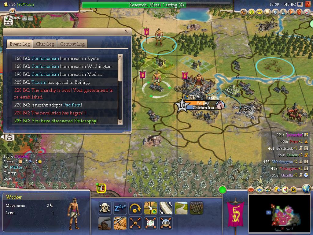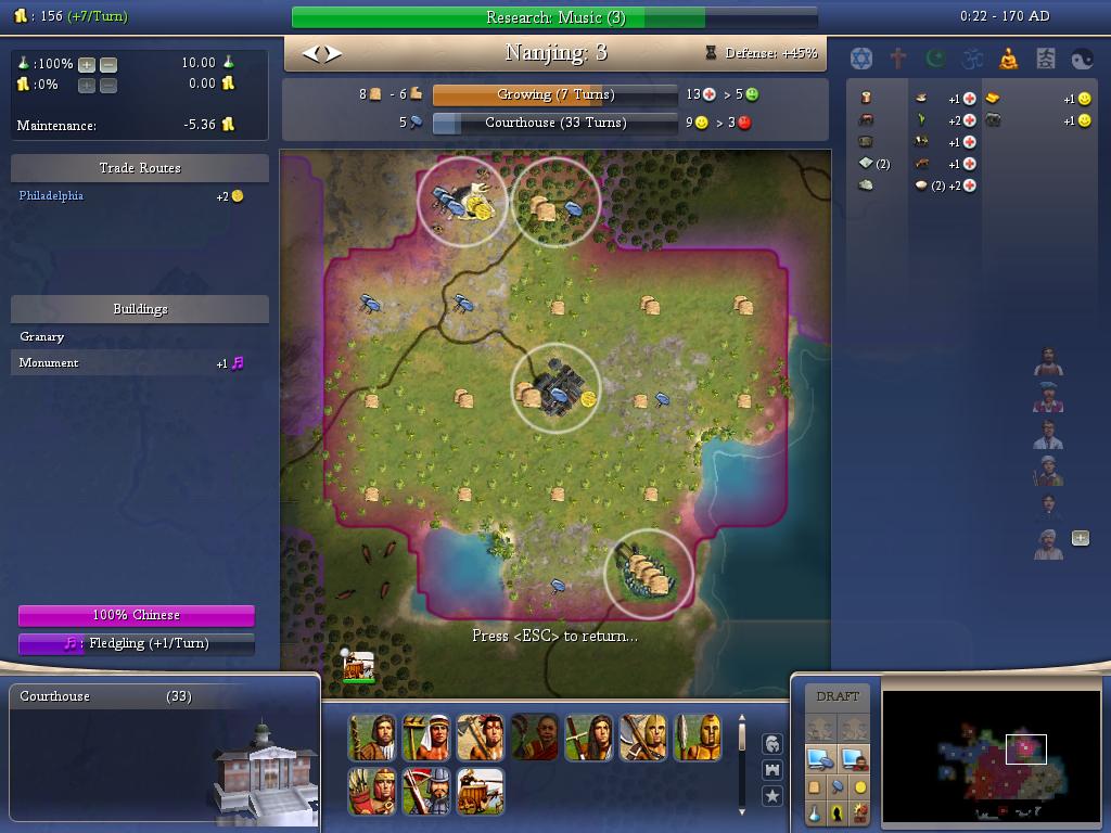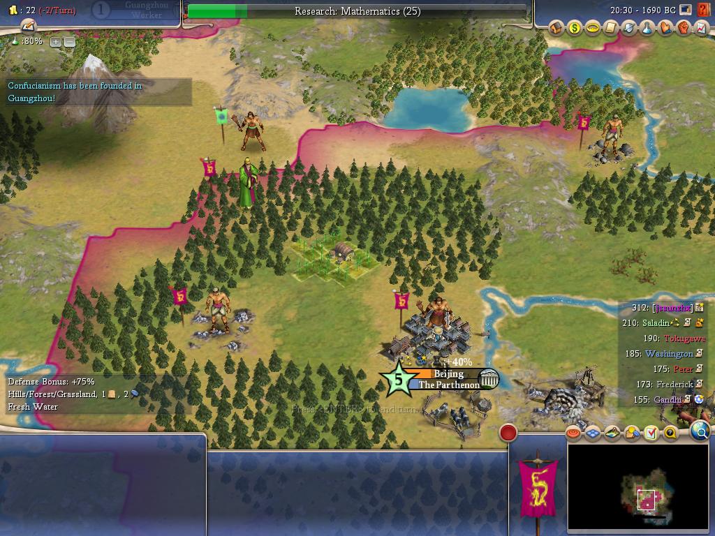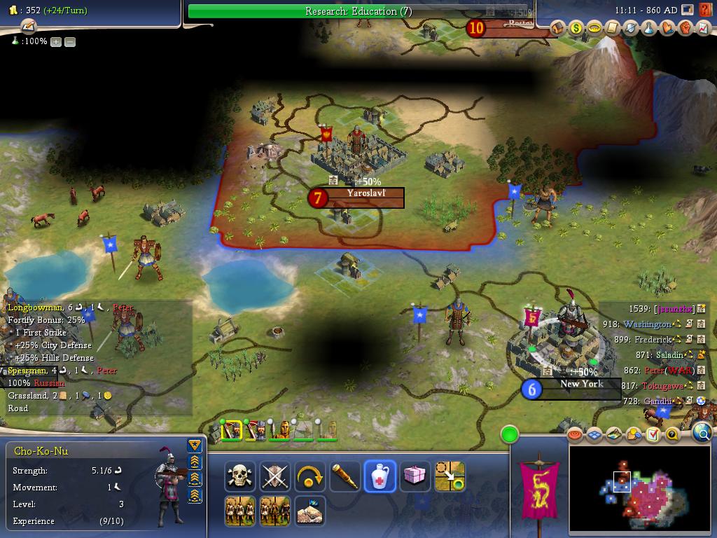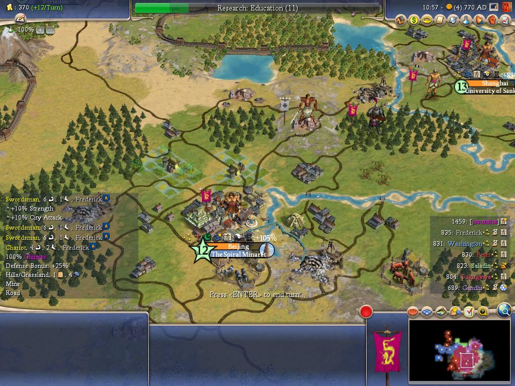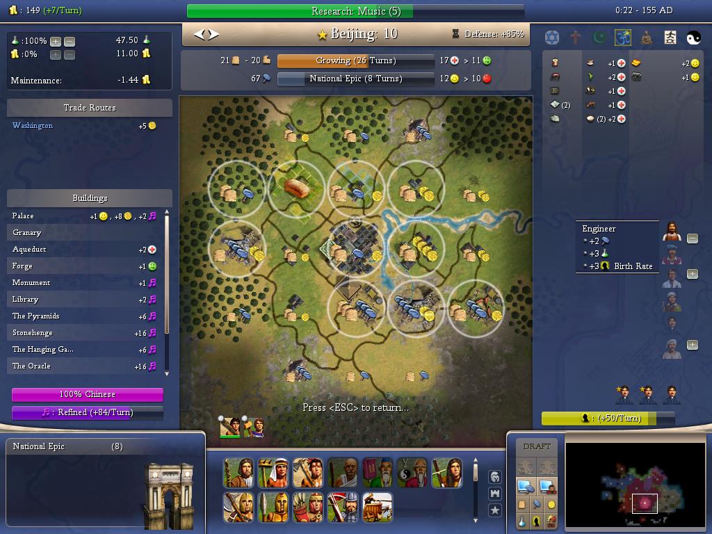 从文明1玩到文明4,有好些年头了,延续自己一贯的游戏风格,种田、种田再种田~不是我不喜欢打仗,实在是不喜欢过多在战术层面纠缠,比如玩三国志,最喜欢的永远是三国九,三国十和十一怎么也不会去理会的