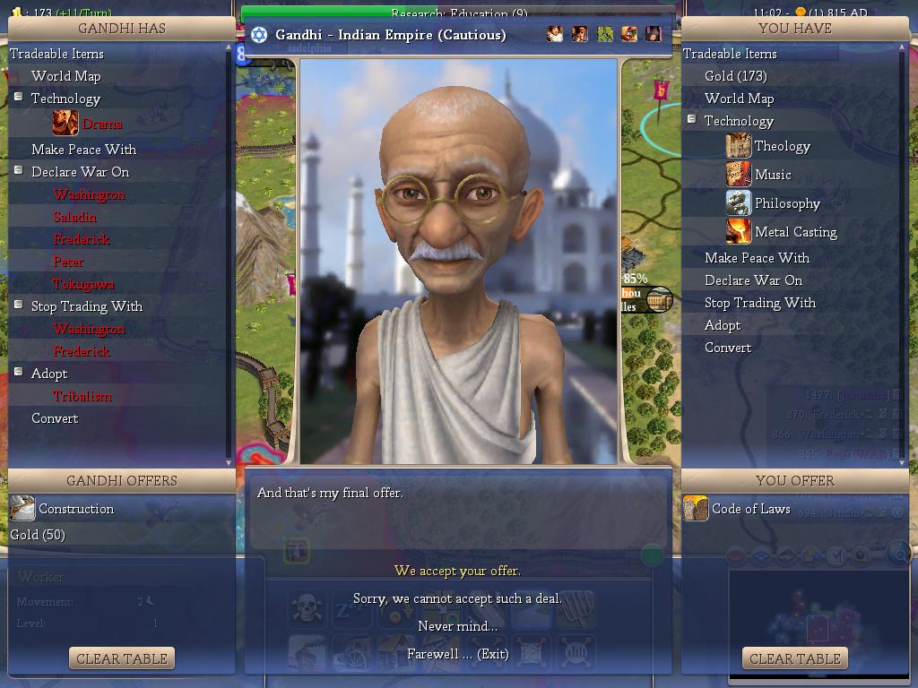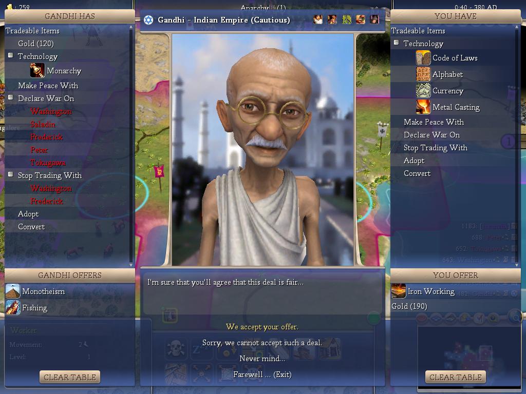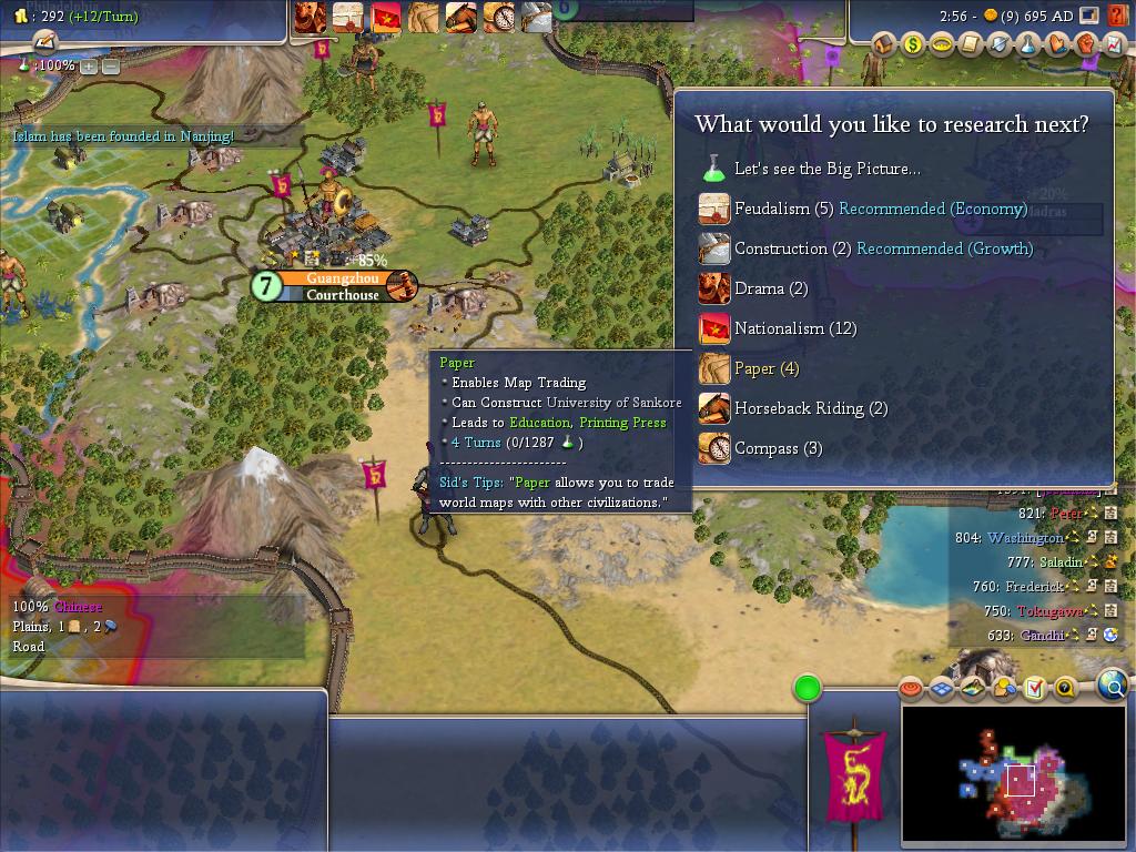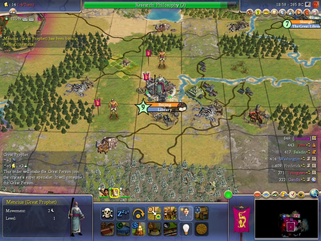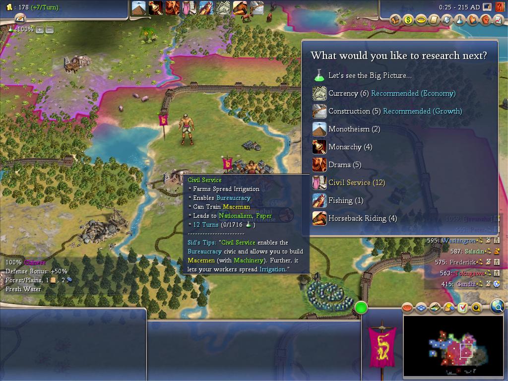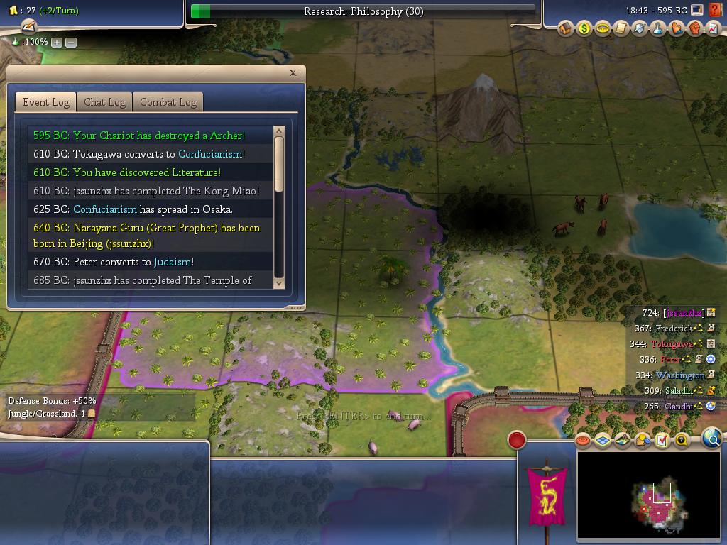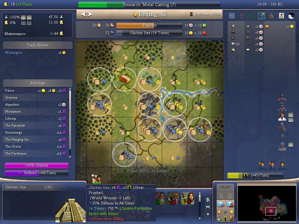 从文明1玩到文明4,有好些年头了,延续自己一贯的游戏风格,种田、种田再种田~不是我不喜欢打仗,实在是不喜欢过多在战术层面纠缠,比如玩三国志,最喜欢的永远是三国九,三国十和十一怎么也不会去理会的