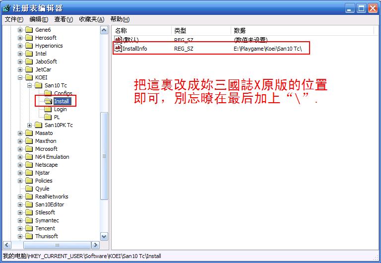 這招這可謂一針見血,直接改註冊鏢裏三10原版的位置即可。別忘暸在最后加上“\”。