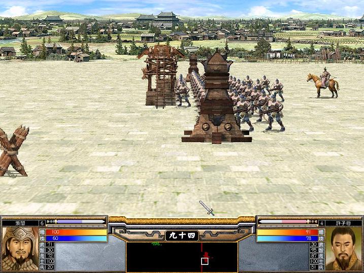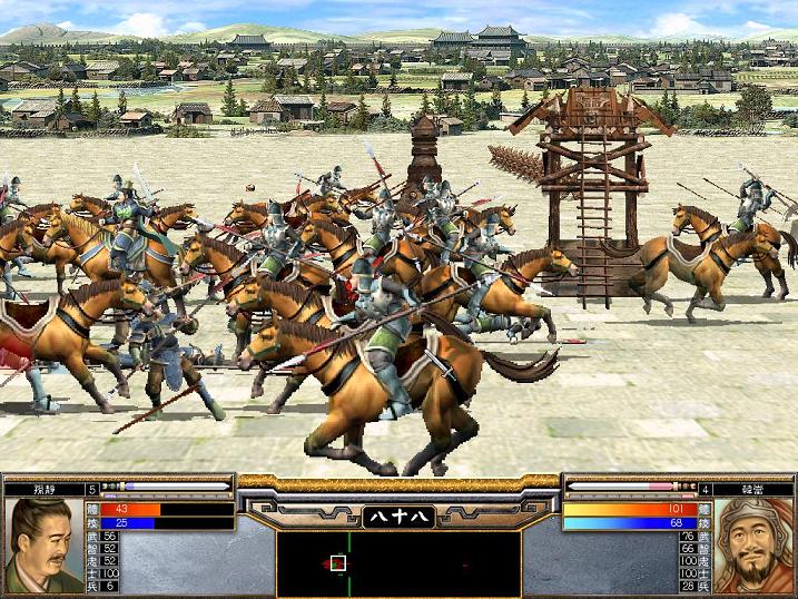 1)敌我实力相当:敌人虽然有城防,但是电脑的AI极其底下不懂得利用,一般他都会出来迎战(你不要到它的那个远距离箭楼的射程)实际也就变成野战了;(2)兵少将强:这又是采用“上下战略”啦!敌人的小兵会出来的,分散好了我武将要从边上走,到了栅栏让武将待机,他会自动攻击栅栏,等打破栅栏后再让武将出击(注意不要太靠中间,否则挨射的),挑之;(3)兵少将弱:同6、1.(3);(4)敌方是会射的兵种(弓兵、弩兵、弩车):这时敌人大多不会出击,我们只能
