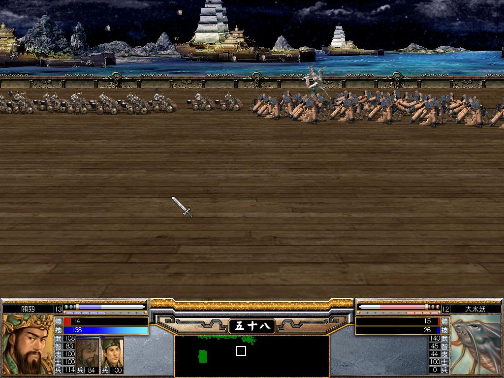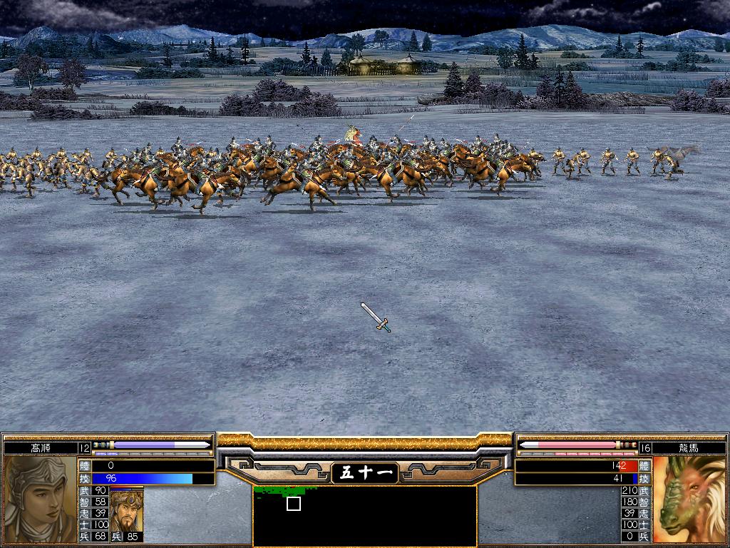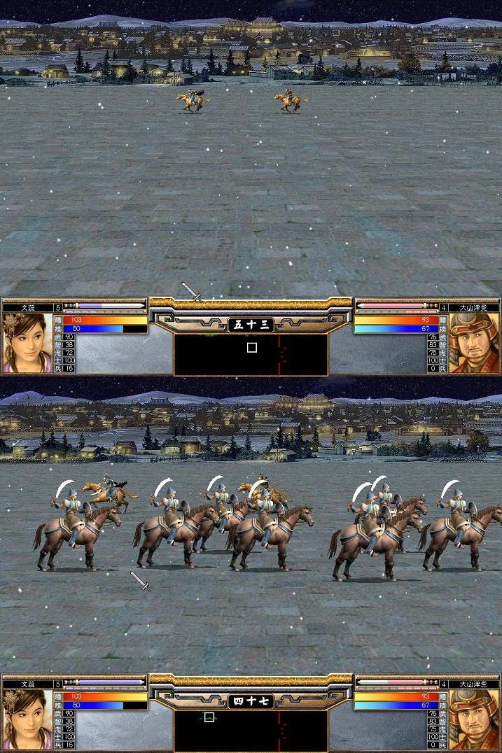 !把将和兵都往一个方向移动(或上或下),到了边上武将出击,同样到了栅栏附近敌人的小兵就会出来打你的武将了,快,撤!嘿嘿,不是撤退,诱敌成功了!让你的小兵消灭敌兵吧(这时很难和敌武将交手,把他的兵消灭了,他就会退了)!