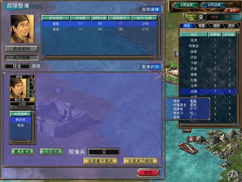 经过了N久的拉锯战,我方的港口降已经无险可守、无兵可派了,可在这时卢值军钟谣部队(何进被我俘虏)却又逼近了...