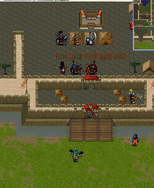 第一回合SL出岳飞那3个人中必定有2个人解除混乱,其中一个给岳飞吃恢复状态的,欧阳从善利用风云箭打死关上的步兵,张宝冲进去和岳飞对话(岳飞顺便吃个经验果) 李琴模仿强行给YYP, 最重要的一点是拿银锤的王横先不要跑到关前,因为下回合会有个武术家到关上,免的被秒杀。