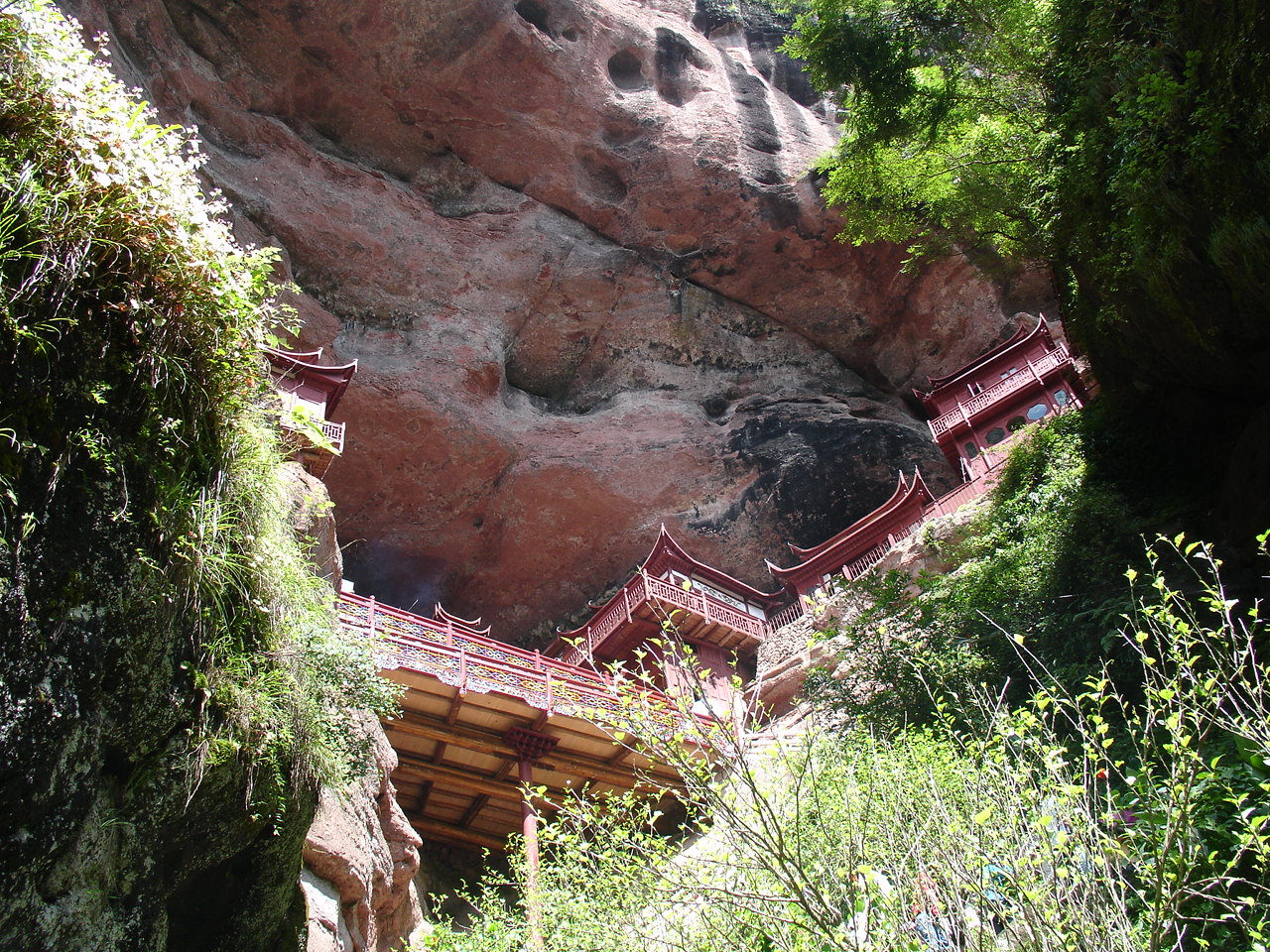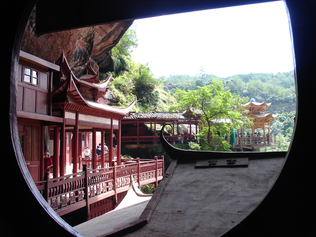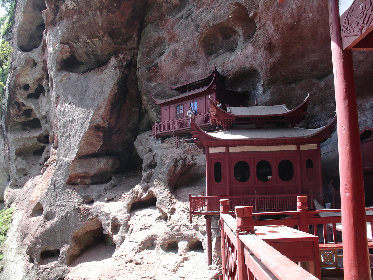 乘船前往第一个景点 是座小岛 岛上有瀑布和悬空寺 甘露寺吧!!