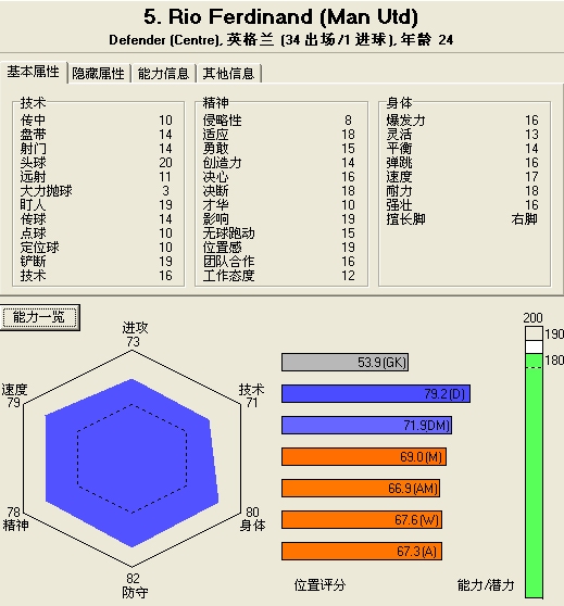 开了个潜力196的阿隆索是我能坚持下来的关键,的确是非常好用的人,几乎没有欠点~~一般情况下中场队员如果有2项低于75我就不用了,阿龙索除了速度全过75了,实在是牛人挖 他速度74