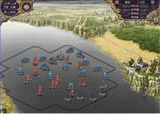 而在原游戏中,即使你有楼船,也没有任何作用,无法突出水军的重要性,如果说魏国有雄厚的兵力,蜀国有高山的天然壁垒,那么吴国就要有海军为特色,因此本人,强调了制海权的重要性,你会发现30000人的小船,是绝对打不过10000人的楼船的,这也符合现实。如果你是魏国想南下的话,可要三思而后行啊!