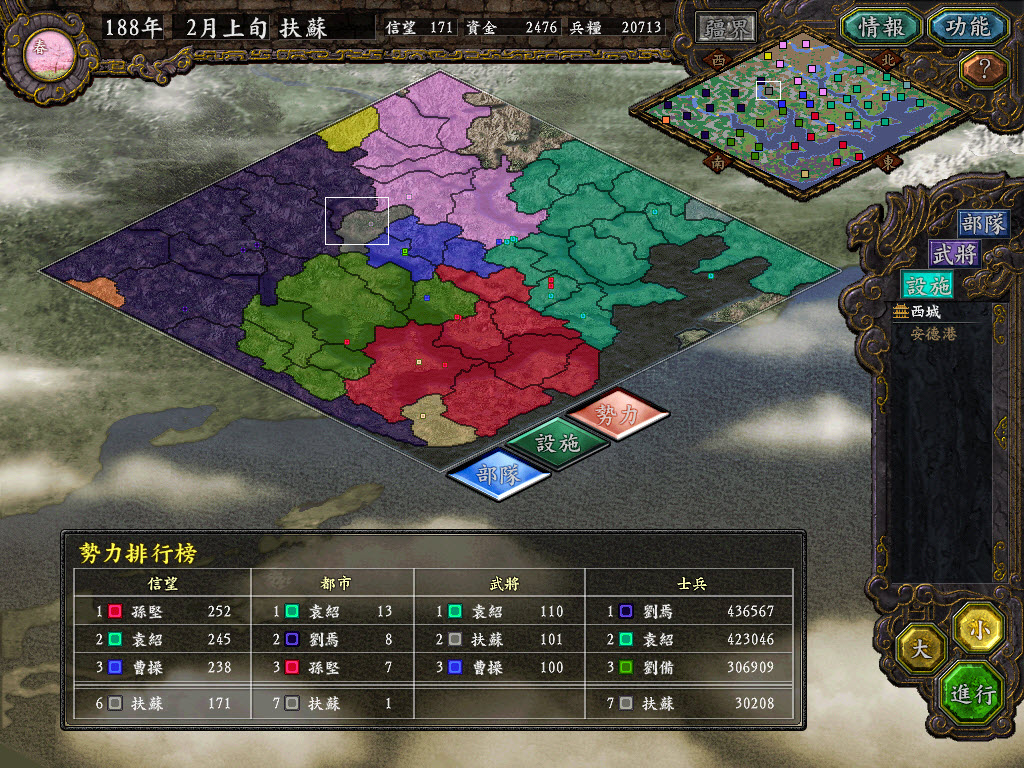 六大诸侯曹操最弱,我打算有实力就吞了他,不过主要计划还是灭董卓,没个相对安定的后方没法征天下~~