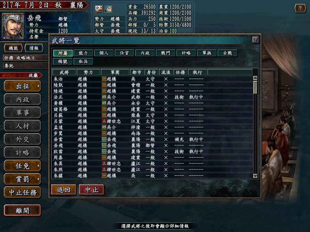 这张是给君主一些将领后君主主城的将。因为是举例,岳云之类的也全给送出去了。