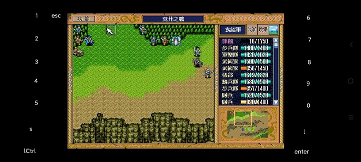 敌25回合初图,关羽挑掉李典,刘封吃掉花5左边骑兵,周仓把花5下面的骑兵混乱掉,第2批的骑兵右攻刘封,军乐顺利到位。