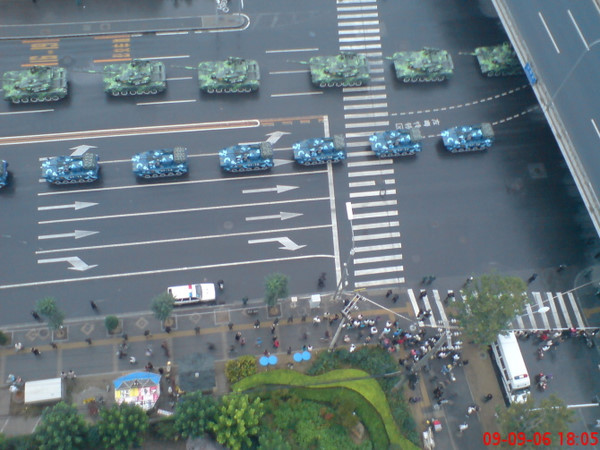 9月6日国庆预演之前,装甲部队通过大望路附件,正开赴长安街.