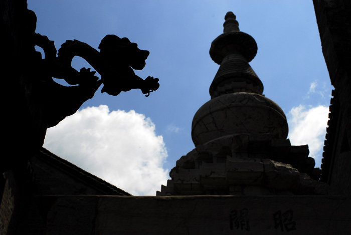 所以在这条仅仅只有一里多长的巷道里,集聚着各式样的宗教场所,甚至在路头还要从一座藏传佛教的白塔下穿过,只是为了能够保佑出行的顺利。这里内如今有些冷清,但是被香火熏黑的铜鼎,青石板铺就的阶梯上深深的车辙印诉说着当年这里繁华的景象。