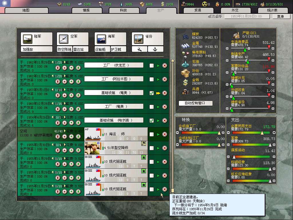 分割小弟日本的舰队完毕,按照主力舰年代以及相应航程,分成远洋攻击性舰队,近海防御性舰队,护航舰队三类共6个舰队,在我国最新主力舰下水之前,将全面承担我国的海上任务,打击除美帝外的其他国家海军的实力还是在的。