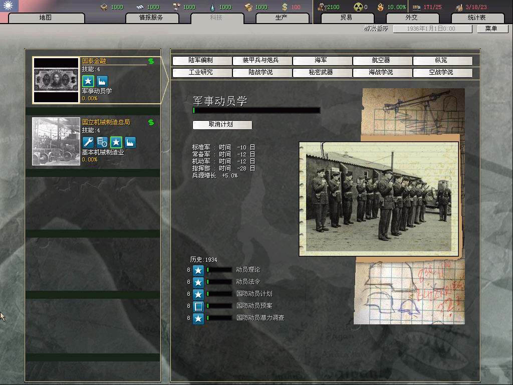 前者是啤酒馆1.5动员系统的相关科技,配合拉一定程度的征召国策,可以在临时获得人力和造兵速度上升。