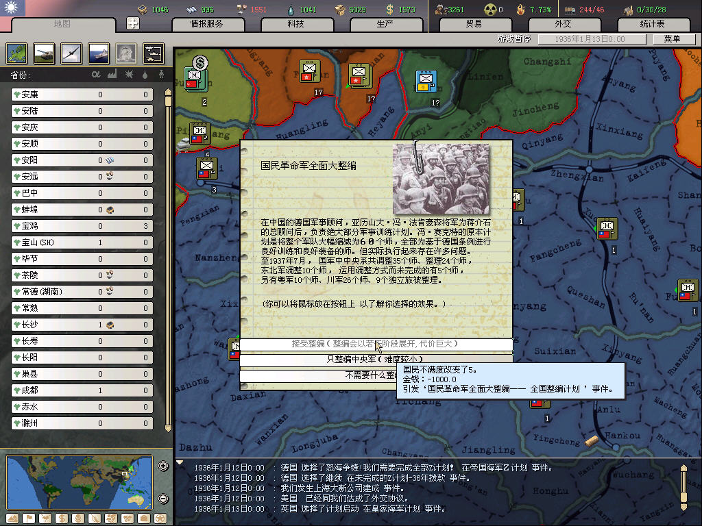 之前开过3.0的档,惨破。这次吸取教训,走精锐化暴兵路线。除了最开始因为全国整编造成兵力不足不得不造42个民兵师外,后面全造常备和标准,并慢慢裁掉民兵。这样人力也省下来了,造出的钱基本用不完。