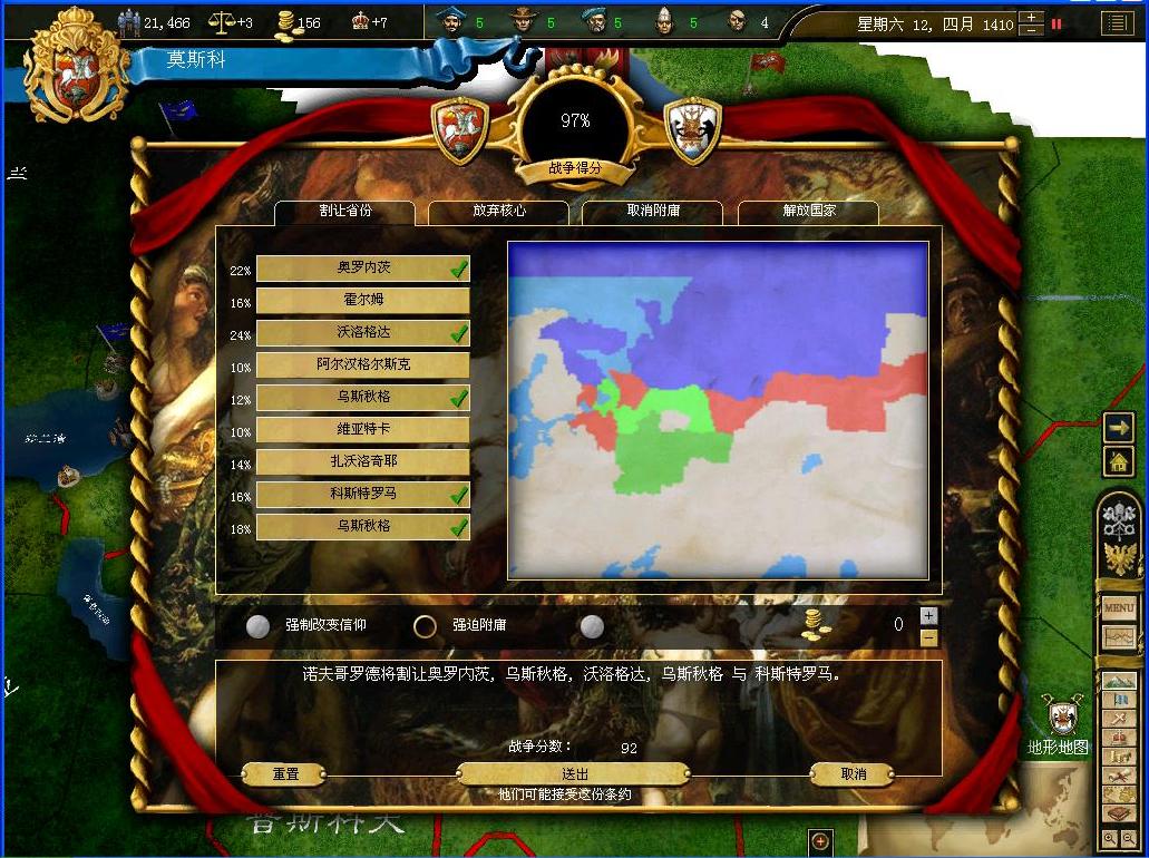 汗,这才注意到居然有两个省都叫乌斯秋格??第3军发现有个千人队在右边的那个省份在建立,杀过去,把敌人剿灭在摇篮中