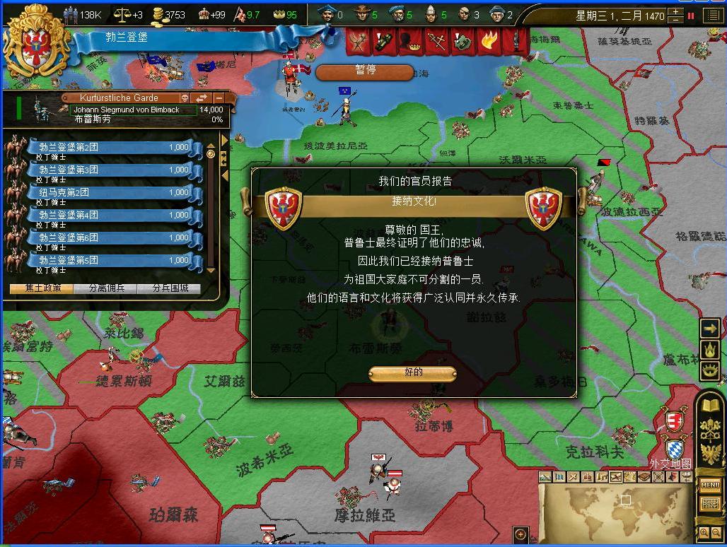 另一方面,普鲁士文化终于被我公国接纳了,从此也成为了公国文化的一部分了.