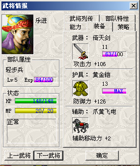 2、为了更好地培养新武将,所有新武将都3级加入,武器、防具每击(被击)获得经验均提高1;