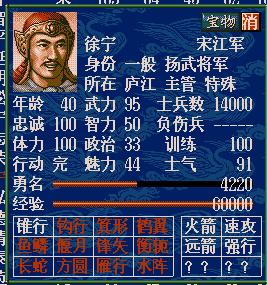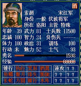 2.豹子头林冲。林冲是东京汴梁人氏,其父曾做过提辖(呵呵,和俺官衔一样啊),所以是军班子弟出身。从豹头环眼、燕颔虎须的相貌到手中蛇矛,林冲似乎是张飞在水浒中的翻版,但也仅仅是这些。实际上,林冲从肤色到性格、气质与三国演义中那个黑猛粗鲁的燕人张翼德是大相径庭的。林教头出阵时的标准打扮是:素罗袍,银甲,霜花马,当然还有那杆丈八蛇矛。从这些来看,林冲的形象又像是张飞加赵云,整体上给人一种英武、勇猛中透着儒雅、俊郎的印象。从性格上来说,读过诗书的林冲(在朱贵酒店写过一首不错的诗,至少是高中文化,呵呵),常常表现出一种处事谨慎、细心甚至于懦弱的文人气质,而这一点又似乎和豹子头这个绰号及外形有些不符。在被高俅强权逼至家破人亡雪夜上梁上之后,林冲性格上变得硬朗起来。在后大半部书中,林教头一直以一种英勇、正义、宽厚、机智的形象出现。有着张飞、赵云般外形的林冲同样有着一流上将的武力,也是水浒作者极力塑造的又一位常胜将军(俺向来不把打田虎和王庆算在内的,被琼英打的那一石头当然也就不算了)。林冲是八十万禁军枪棒教头,大宋朝御林军高级单兵技术教官,其本身基础武艺精熟,武学修养极深。水浒中多处描写并渲染了林教头的武力,其中以十合内生擒一丈青扈三娘最为精彩露脸。在这段中,王英、马麟、欧鹏先与一丈青的交手可看作是施大爷为衬托林冲武力而做的铺垫。尽管你可能说绿林淫贼王英只是三脚猫的武艺,但欧鹏、马麟(尤其是欧鹏)已是具有弱二流至中二流武力的水浒好汉。这几位江湖高手废尽九牛二虎之力都占不到一丝便宜的扈三娘竟几合内被豹子头轻舒猿臂马上生擒,可见林冲武力高超之匪夷所思。作为枪棒教头,上山以前林冲并没有太多指挥集团军作战经验,在统兵经验上显然要弱于同为五虎将的关胜和呼延灼。但可能是其性格精细、沉稳和有文化(应读过兵书)的缘故,从书中的一些细节上看,林冲也颇有些谋略,足显其不凡的统帅素质。