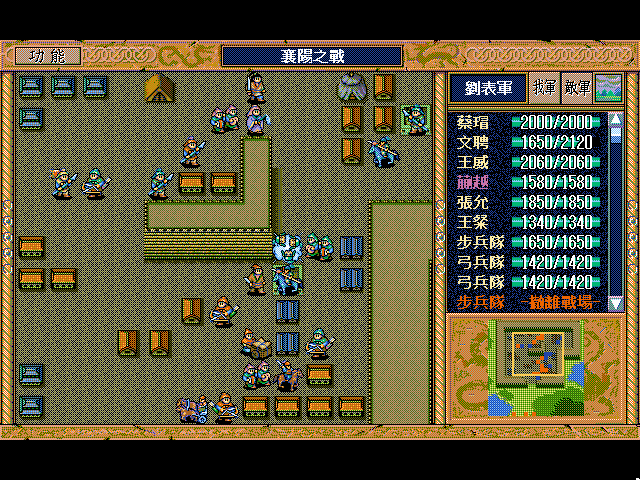 關羽或趙雲佔藩宮右下,讓無名弓兵左移援助,視需要加或另佔寶物庫左下,以拖著孫瑜在敵隊最後