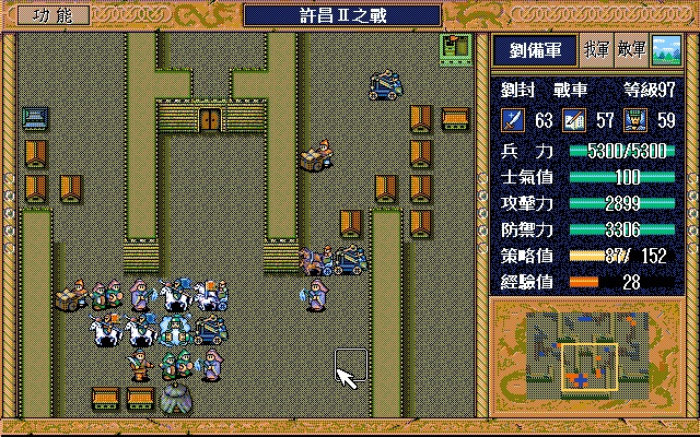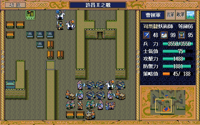 对这四个人再解释一次:刘辟其实很好养的,从瓦口开始前期反击杀伤并不大,后期往往可以让他单独行动,弄个村庄或鹿砦,放个敌骑(最好是名将)在里面就行了, 之所以要求后期追级的贼策略要高原因就在这里;剩下3个大策略者,陈式一个人有富余,按我的进度宛II以后3战都可以再上1个大策略;沙摩柯只需占4个位置就可以用襄阳青囊,所以只需再挤出1战即可;藩宫前面一直可以压级,按木之的成绩到雒I为47.93级,刨去2主将算47级,兖州之后只出了江陵、公安、雒I三战62回合,后面还有没有烧火机会要再算过,但即使现在就变战车也比关纯优了。请注意,关纯天然出成绩应计算到兖州为止,为40级左右,用补丁会高一些,游客丁是42级,再多就要挤占他人资源了。