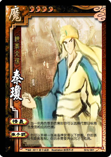 秦琼的技能本来是复制了LZ的但是考虑到桃园结义用的情况比较少,4血的武将带加血技能也不太好所以改成了现在这个,
