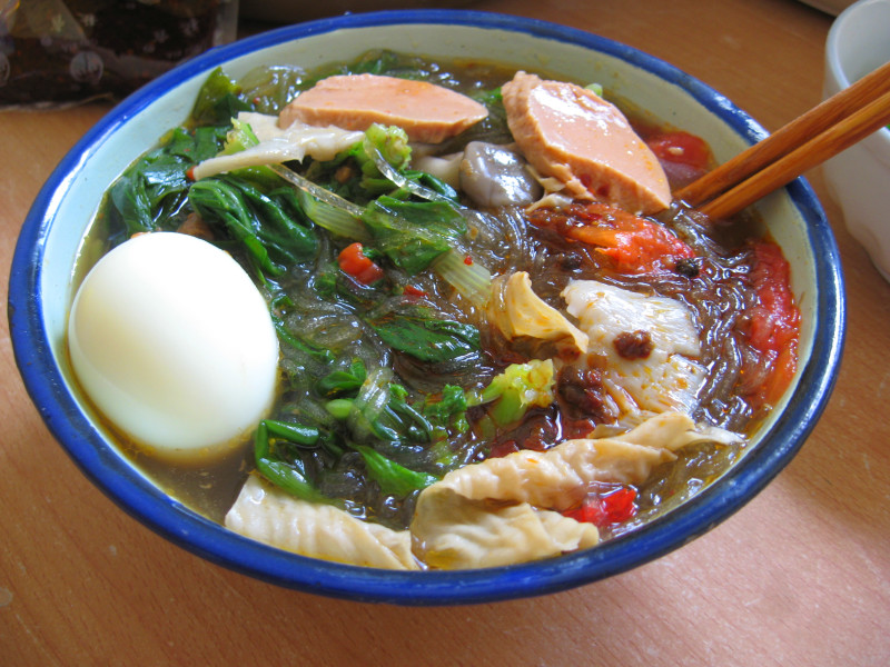 这个好吃 就是做起来麻烦 尤其是擀面条 真费神 因为我是出了名的慢孩子 动作就是快不了!