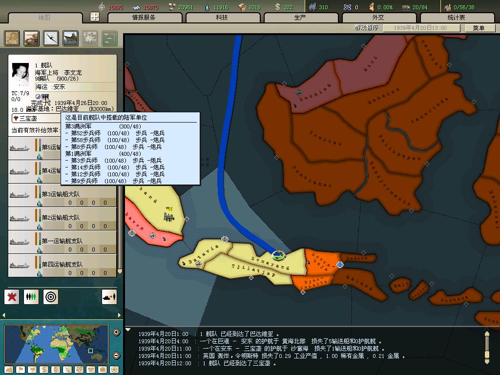 继续占领无人防守的东港,帝国运输船队转移基地,准备对东侧隔海的爪哇岛发起进攻。
