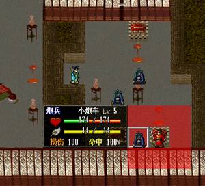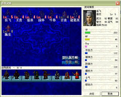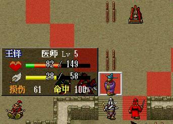 4.第8回合:上回合诸葛左移一格,王娆到诸葛和张之间,汤上移一本回合王张打施(均无双无暴,很简单,不须过度S/L,本人不喜欢S/L,所以本攻略不会过度S/L,顺其自然)诸葛补法打残)岳帅吃粗粮吧,不要让HP太少(图5)