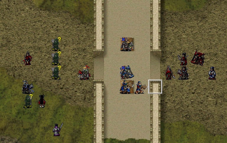 第三回合宗源灭道士及斜上角拿无名剑的勇士 周灵混乱追下来的勇士,美容输送宗源 敌军回合 贼兵砍到宗宝喘气,需要S/L :周灵不被混乱