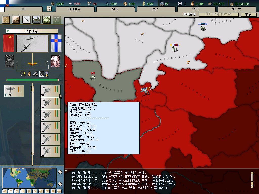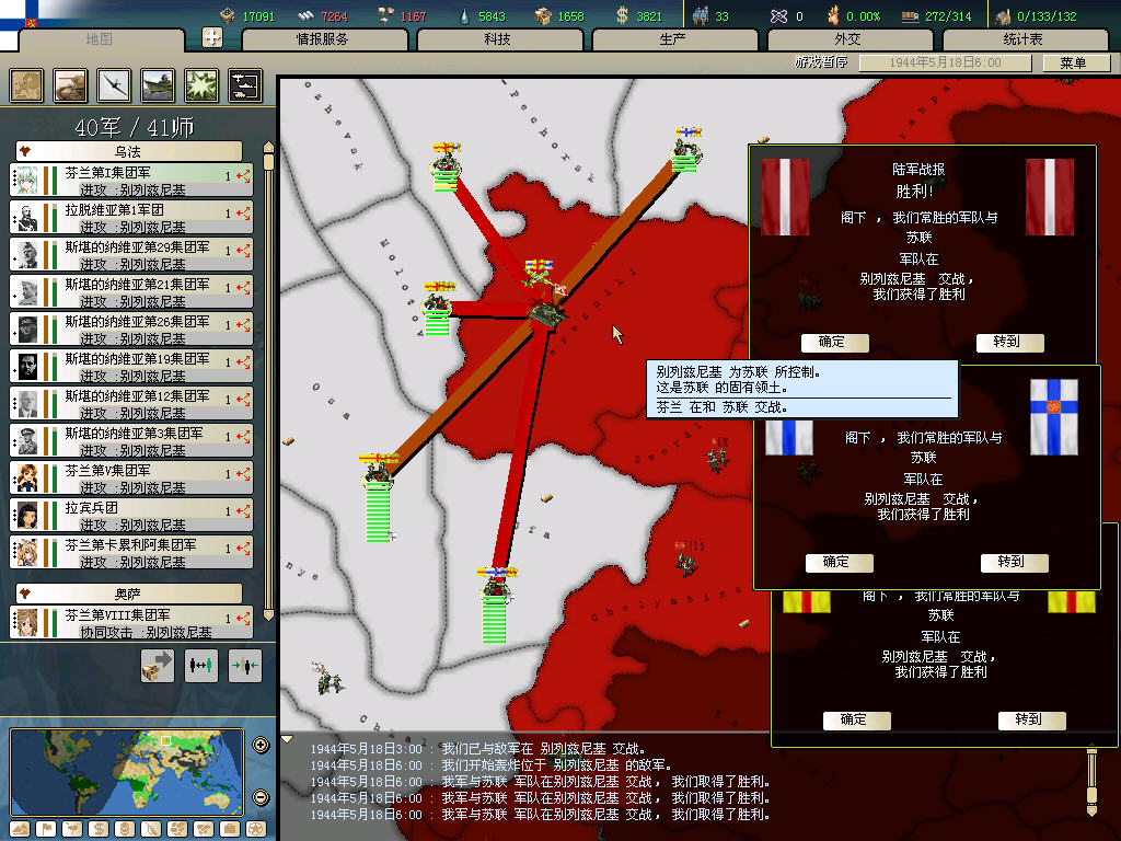 西线米妖300装甲部队登陆收复维西大半,东线毛子1000多师以泰山压顶之势(冻土进攻160%效率)推进到德国本土,最后竟还是撑过来了